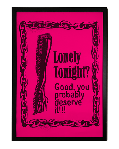 Lonely Tonight? A2 Screen Print on Neon Pink Paper