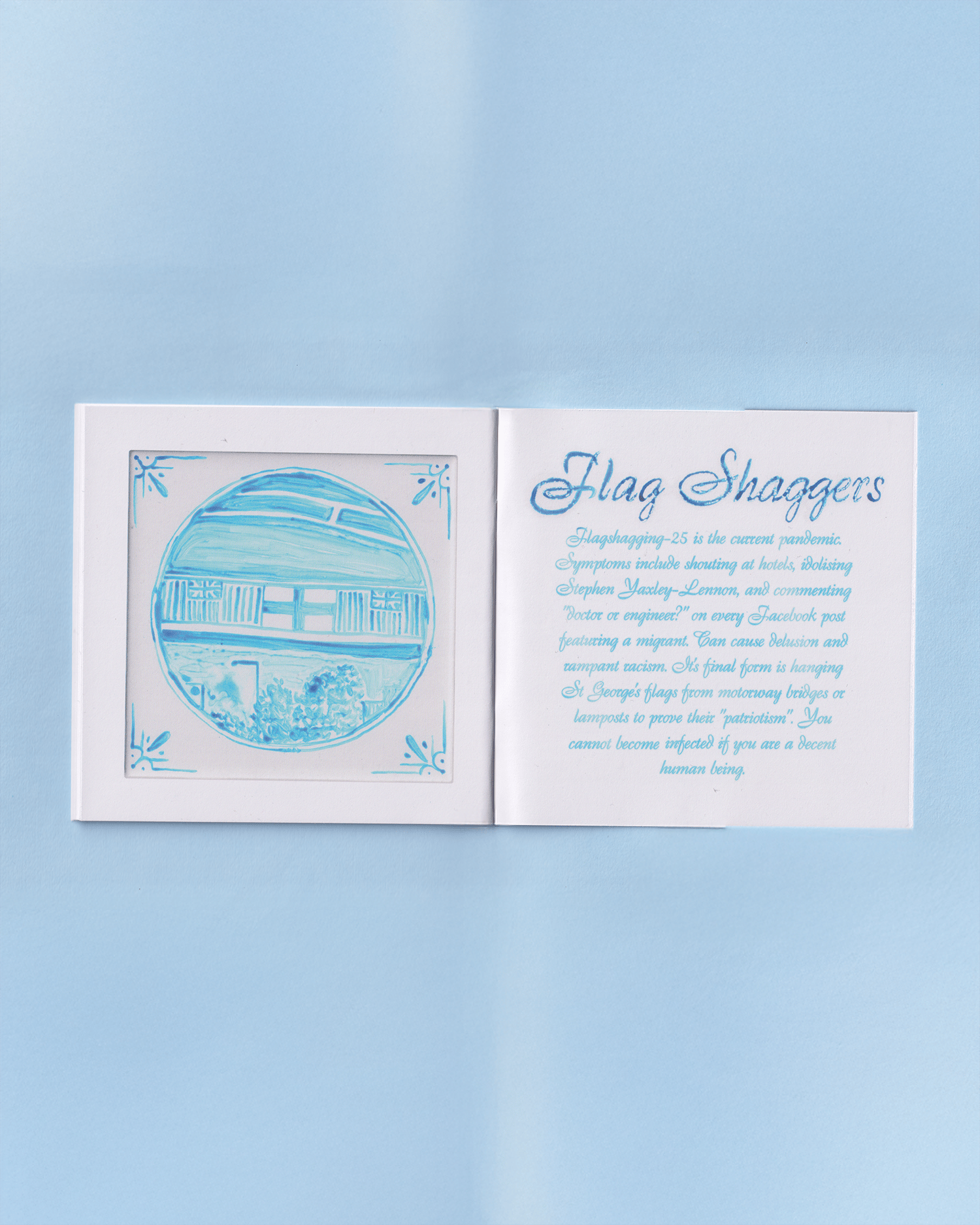 Each zine comes with an A2 poster of the full "Piss Elegant" artwork, consisting of hand-painted tiles.